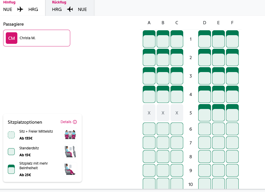 Ich will Sitzplätze mit mehr Beinfreiheit, wenn ich diese Reihen bei Eurowings - und zu einem einigermaßen vernünftigen Preis buchen kann, flieg ich mit Eurowings. Gibt es hier Erfahrungen, ob diese 5 Reihen überhaupt bei Pauschalreisen buchbar sind? - inzwischen ist ja alles möglich bzw. unmöglich.