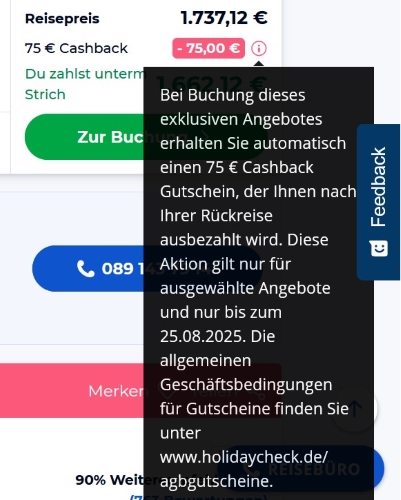 Aber wie gesagt: Die Hinweise kommen zweimal, erst beim Angebot, dann in der eigentlichen Buchungsstrecke.