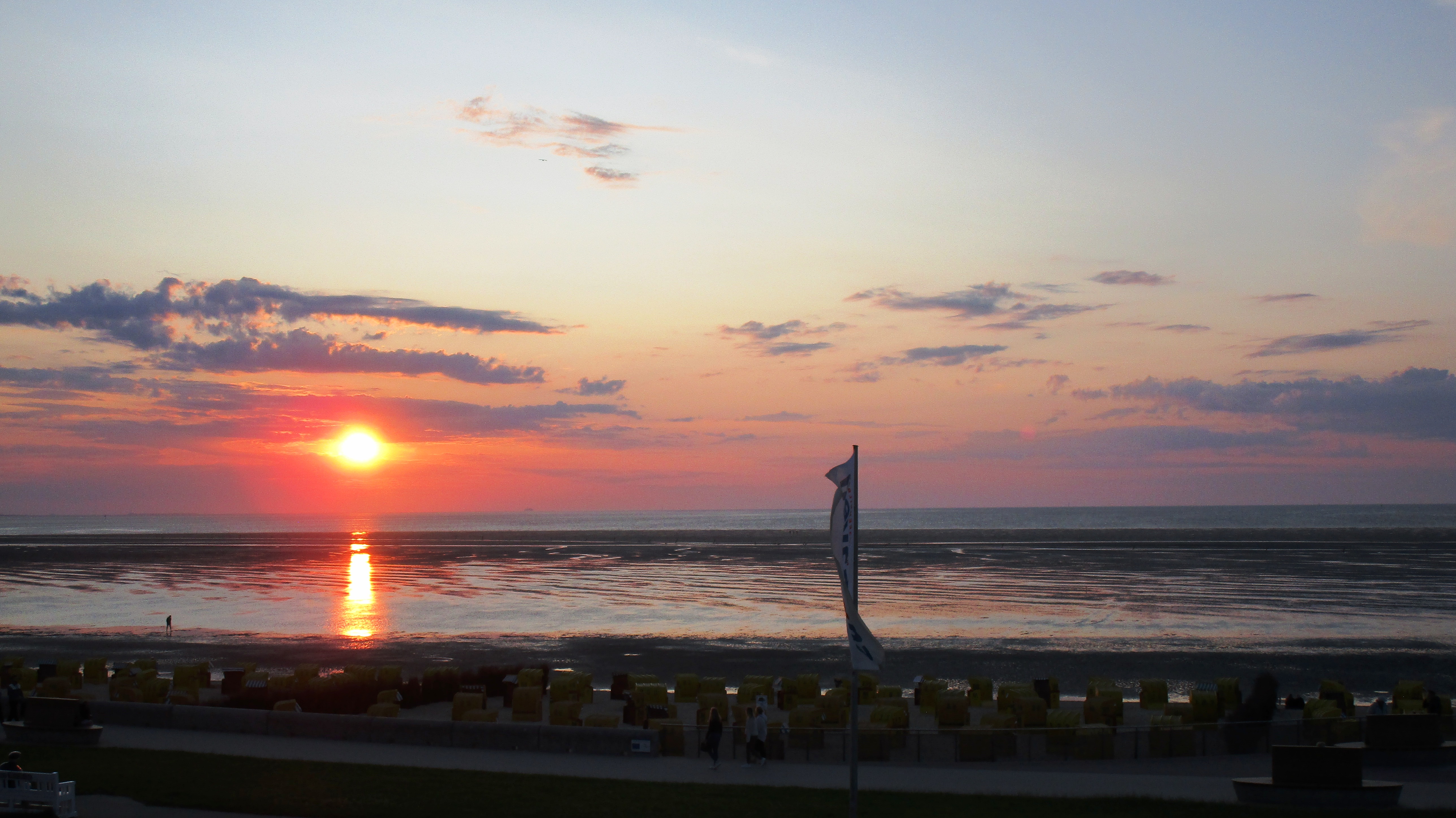 Einen ähnlichen Sonnenuntergang habe ich mal auf Mallorca fotografiert. Aber was da vorn im Bild ist.... In großer Vergrößerung könnten es Strandkörbe im sehr Dunklen