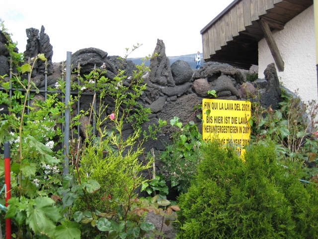 Das liegt, denke ich, daran, dass der Ätna ständig aktiv ist und es somit immer wieder Neues auch auf der unteren Ebene gibt. Denn die wird ja nicht von der Lava verschont. Z. B. muss es 2001 für dieses Haus knapp gewesen sein: