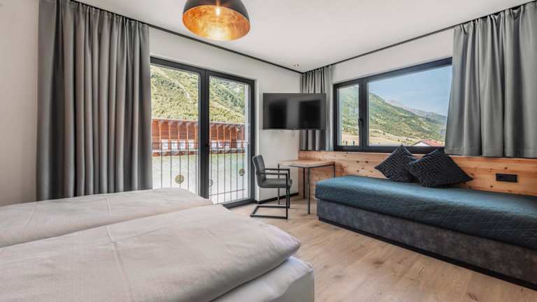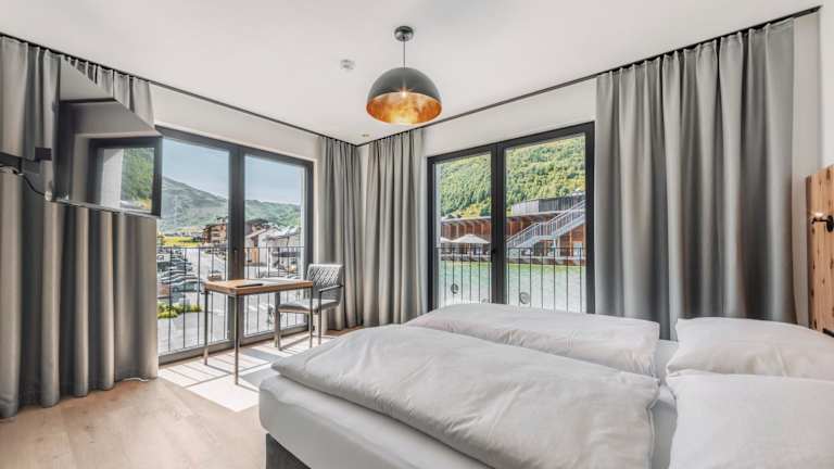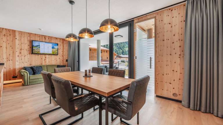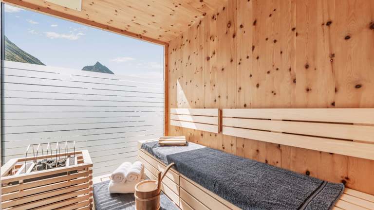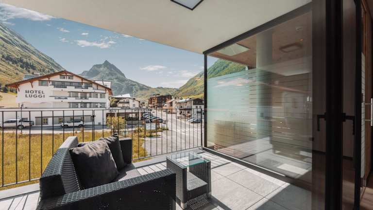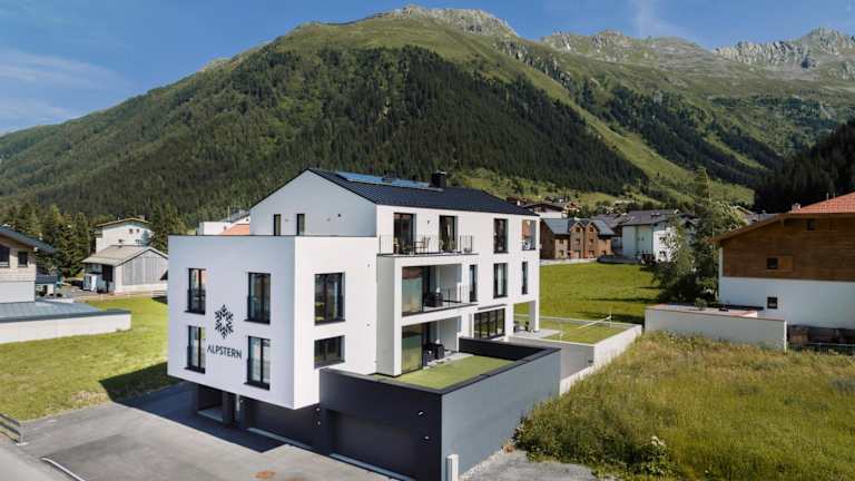 ΛLPSTERN - Silvretta Card Premium Betrieb bietet Übernachtungsmöglichkeiten mit Zugang zu verschiedenen Annehmlichkeiten wie einer Sauna. Die Unterkunft verfügt über Balkone sowie eine Terrasse mit Blick auf die umliegenden Berge.