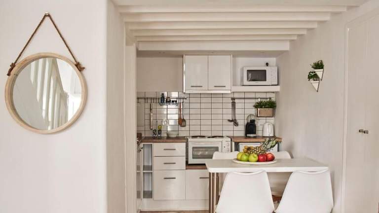 Die Mykonos City Villas verfügen über voll ausgestattete Küchen in jeder Wohneinheit, so dass die Gäste ihre eigenen Mahlzeiten zubereiten können. Alternativ gibt es in der Umgebung eine Vielzahl von Restaurants und Cafés, in denen Sie lokale Spezialitäten und internationale Küche genießen können.