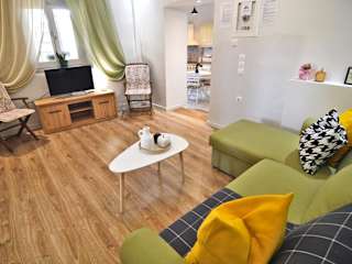 Die Ferienwohnung verfügt über 3 Schlafzimmer, ein Wohnzimmer, eine voll ausgestattete Küche mit Kühlschrank und Kaffeemaschine sowie ein Badezimmer mit Dusche. Handtücher und Bettwäsche werden bereitgestellt.