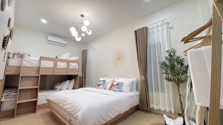 Die klimatisierten Zimmer bestehen aus drei separaten Schlafzimmern und bieten moderne Annehmlichkeiten wie einen Flachbild-TV. Es sind Nichtraucherzimmer vorhanden und die Unterkunft bietet ein Familienzimmer sowie einen Garten.
