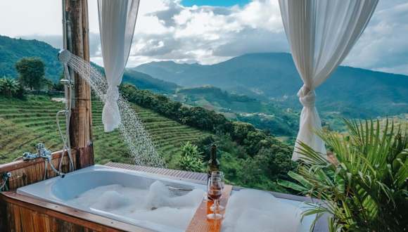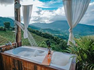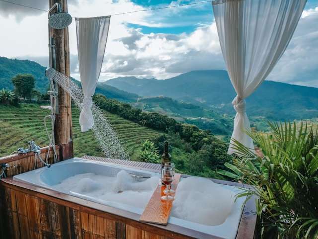 Im ใจโฮมสเตย์ können Sie sich im Whirlpool entspannen oder im Garten die Natur genießen. Die Unterkunft bietet auch Zugang zu einer Terrasse, auf der Sie sich entspannen und die frische Luft und den Ausblick auf die Berge genießen können. In der Umgebung gibt es auch verschiedene Freizeitaktivitäten wie Wandern und Radfahren.