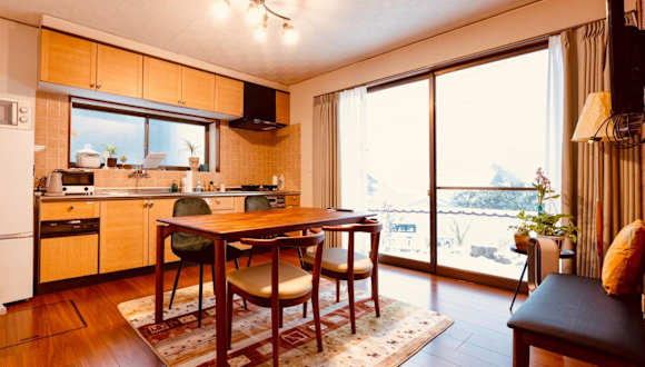 Die geräumige Ferienwohnung im Hotel 湯庵 完全貸し切り庭付き verfügt über 3 Schlafzimmer, ein Badezimmer, eine voll ausgestattete Küche und einen Balkon. Zur weiteren Ausstattung gehören Bettwäsche, Handtücher, ein Flachbild-TV, ein Essbereich und eine Terrasse mit Blick auf die Stadt. Kostenloses WLAN ist ebenfalls verfügbar.