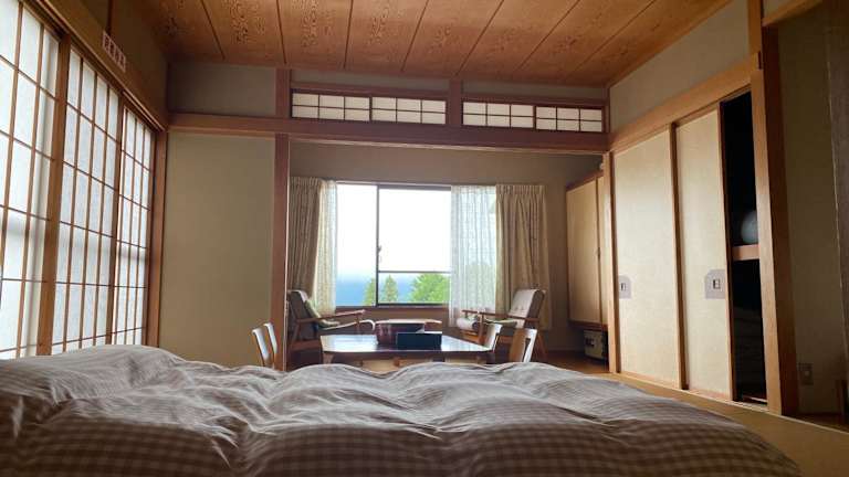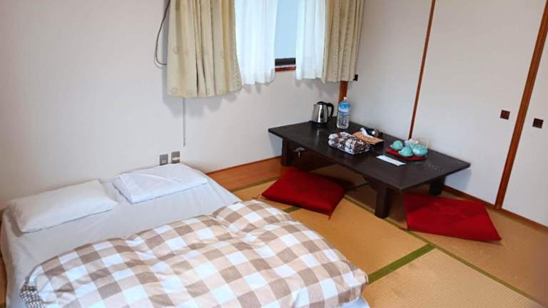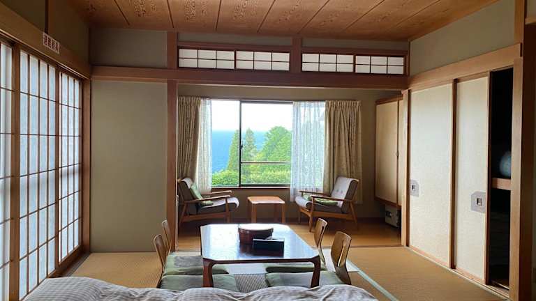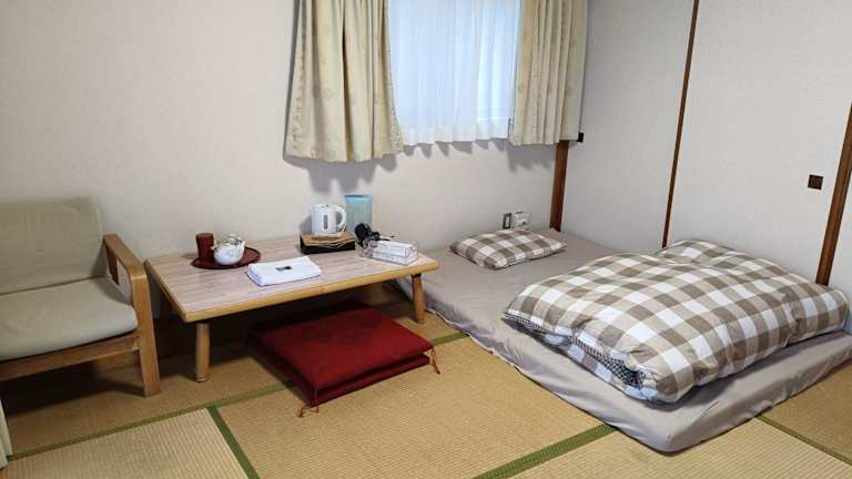 Die Zimmer in diesem Ryokan bieten Komfort und Gemütlichkeit für die Gäste. Jedes Zimmer verfügt über ein Gemeinschaftsbad und einige Zimmer haben sogar eine Terrasse, auf der die Gäste entspannen können. Die Einrichtung ist traditionell japanisch und sorgt für eine authentische Atmosphäre.