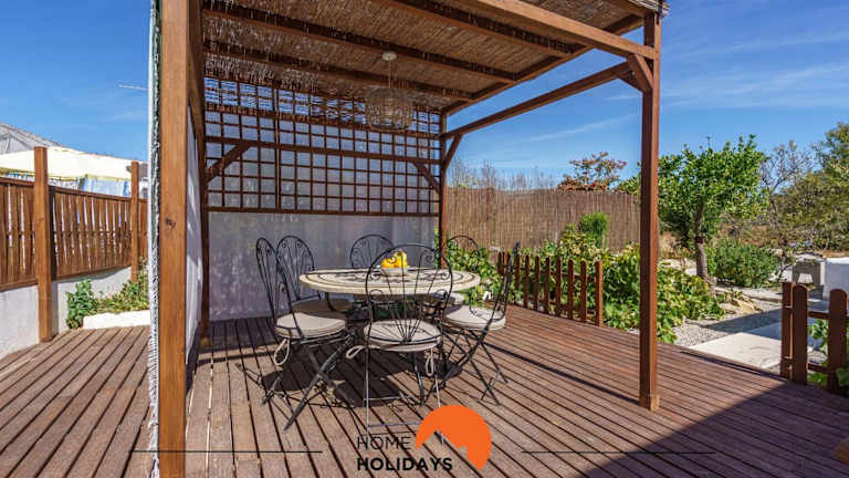 Die Unterkunft bietet Übernachtungsmöglichkeiten in einem vollständig ausgestatteten Ferienhaus mit kostenlosem WLAN und Klimaanlage. Zudem stehen ein Garten und eine Terrasse zur Verfügung, die den Gästen Entspannung im Freien ermöglichen.