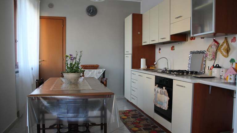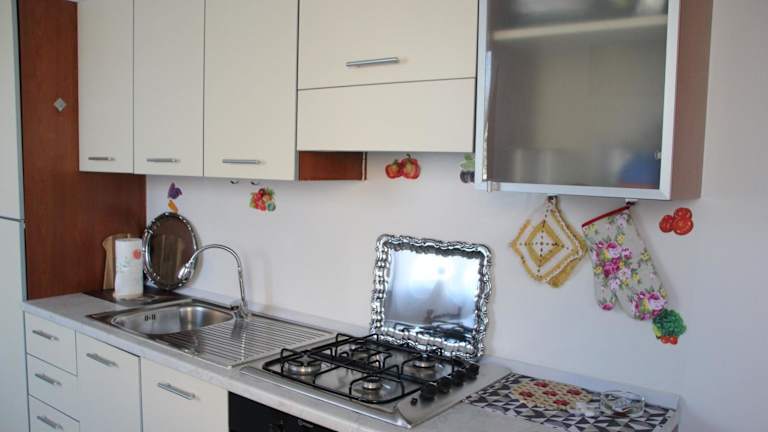 Die Ferienwohnung besteht aus zwei Schlafzimmern, einem Wohnzimmer sowie einer vollständig ausgestatteten Küche, die mit einem Ofen und einer Kaffeemaschine ausgestattet ist. Zudem verfügt sie über ein Badezimmer mit Bidet und Dusche. Ein Flachbild-TV ist ebenfalls vorhanden. Bei Bedarf kann gegen Aufpreis Bettwäsche gewechselt werden.