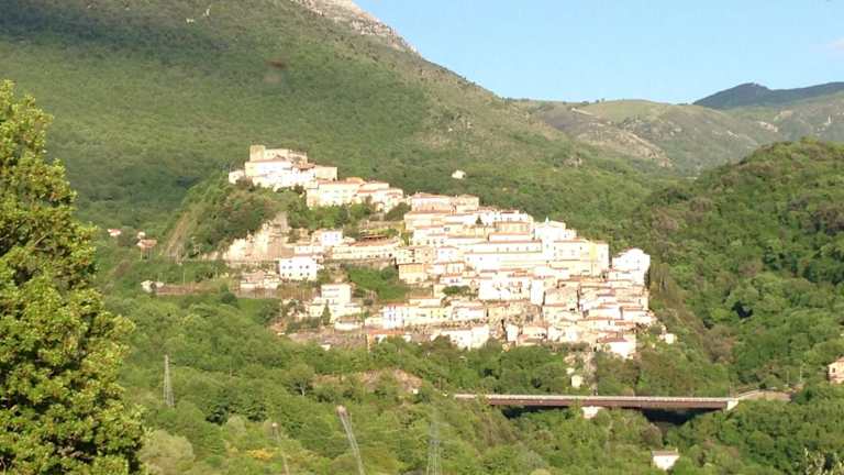 Das Ferienhaus "CUORE DEL POLLINO" befindet sich in Viggianello und bietet einen Blick auf einen Fluss sowie die umliegenden Berge.