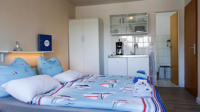 Die Ferienwohnung verfügt über eine Küchenzeile, die mit einem Kühlschrank, einem Toaster und einem Wasserkocher ausgestattet ist. Handtücher und Bettwäsche werden bereitgestellt.