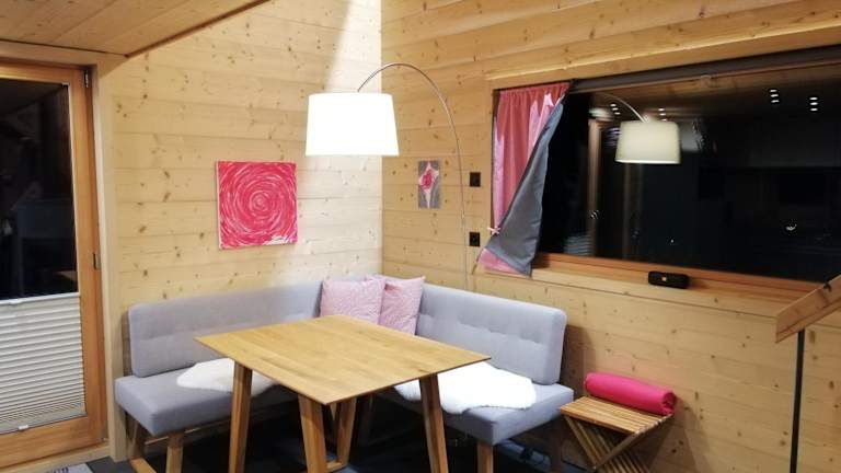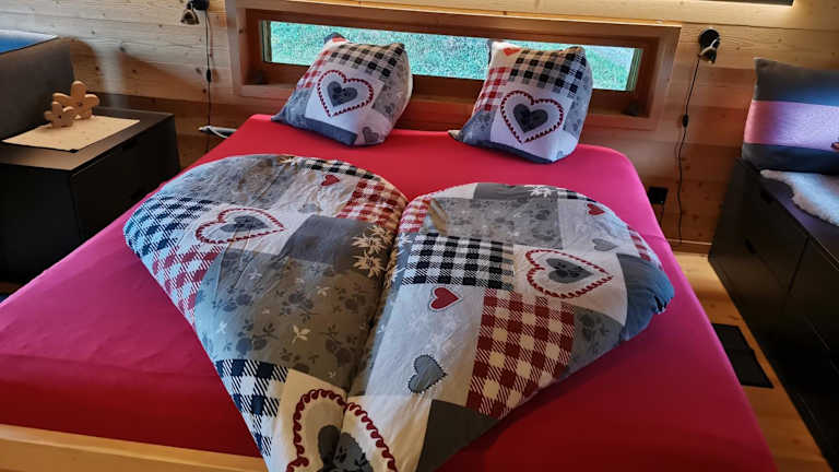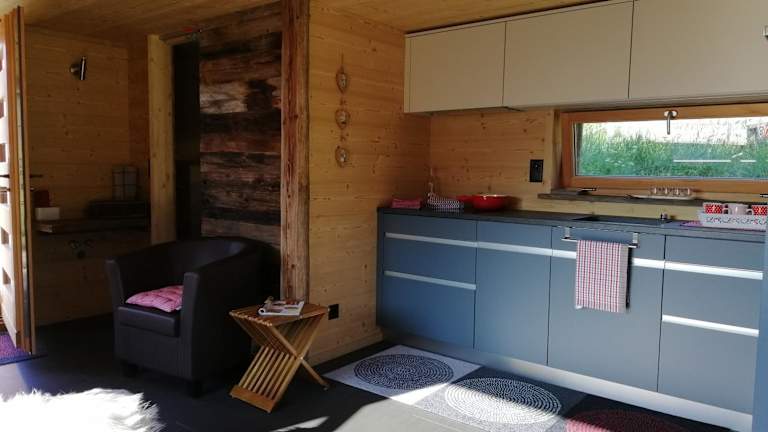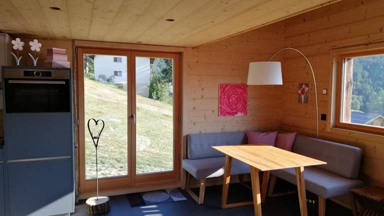 Das Chalet verfügt über ein Schlafzimmer, ein Wohnzimmer sowie eine gut ausgestattete Küche mit Kühlschrank und Geschirrspüler. Es gibt ein Badezimmer mit Dusche und eine Terrasse mit Bergblick. Handtücher und Bettwäsche werden bereitgestellt.