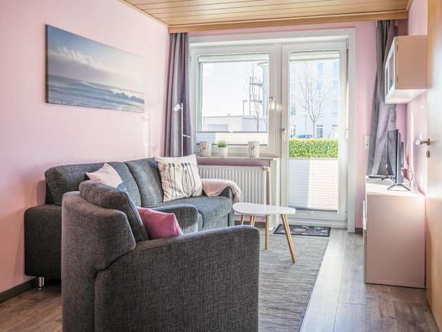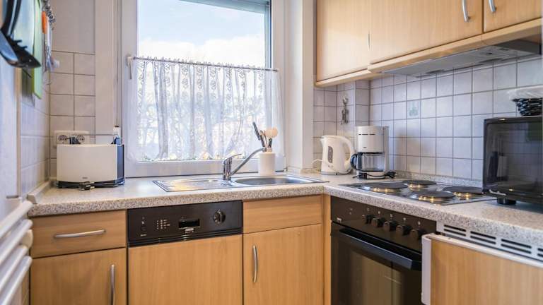 Die Ferienwohnung besteht aus einem Schlafzimmer und ist mit einer Küche ausgestattet, die über einen Kühlschrank und Geschirrspüler verfügt. Das Badezimmer ist mit einer Dusche, einem Haartrockner und einer Waschmaschine eingerichtet. Zur Unterhaltung stehen ein TV, ein Blu-ray-Player und ein CD-Player zur Verfügung. Bettwäsche und Handtücher sind nicht im Preis enthalten, können aber gegen Aufpreis ausgeliehen werden.