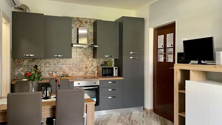 Das Apartment bietet Ihnen die Möglichkeit, Ihre eigenen Mahlzeiten zuzubereiten, da es über eine voll ausgestattete Küchenzeile verfügt. Alternativ können Sie auch eines der nahegelegenen Restaurants besuchen und die lokale Küche genießen.