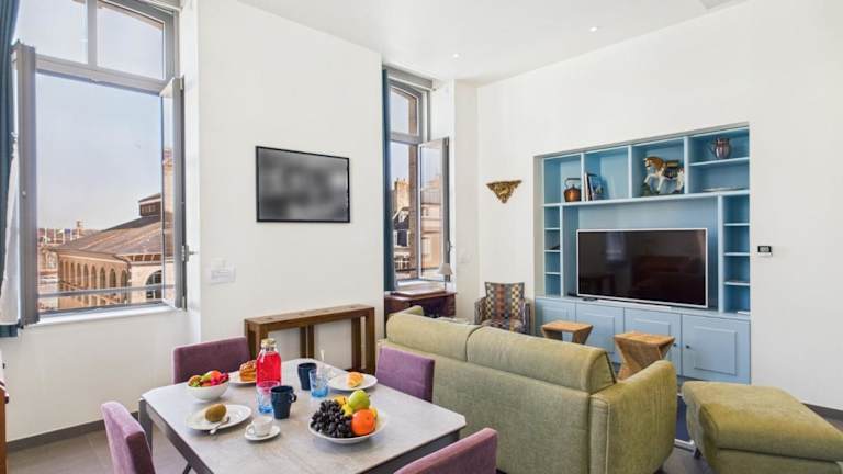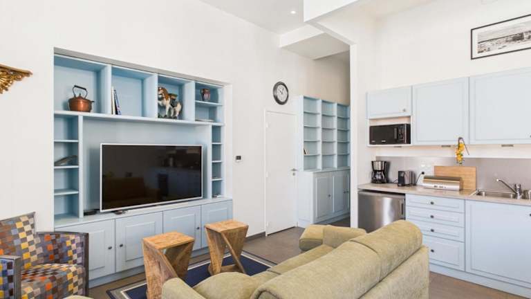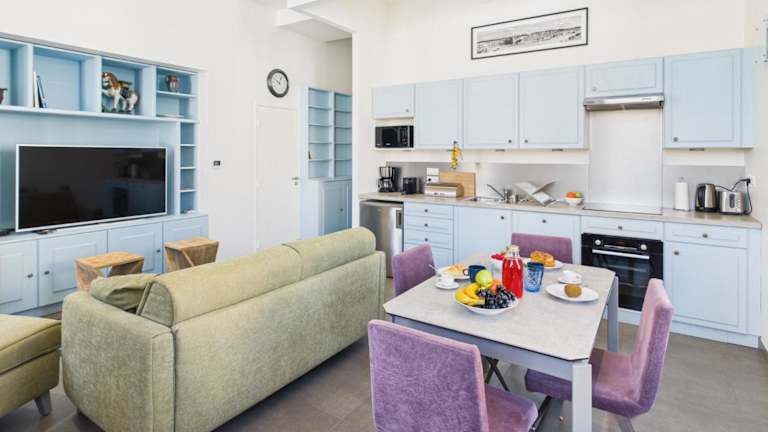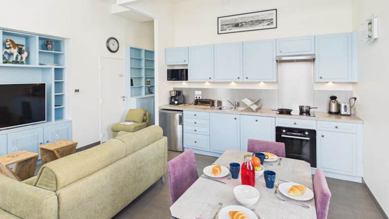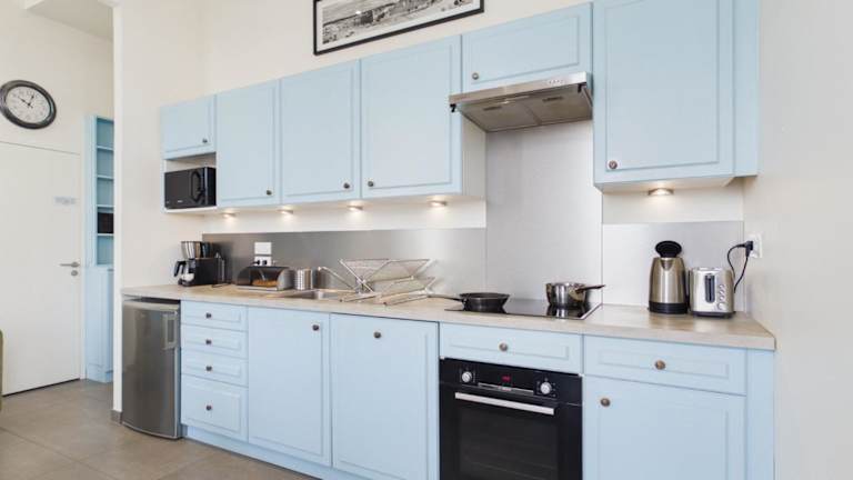 Die Ferienwohnung besteht aus einem Schlafzimmer, einem Wohnzimmer und einer voll ausgestatteten Küche, die mit einem Kühlschrank und einer Kaffeemaschine ausgestattet ist. Zudem steht ein Badezimmer mit Dusche und Haartrockner zur Verfügung. Für die Gäste steht die Möglichkeit zur Verfügung, Bettwäsche und Handtücher gegen eine zusätzliche Gebühr zu mieten. Haustiere sind nicht erlaubt, und alle öffentlichen sowie privaten Bereiche sind Nichtraucherzonen.