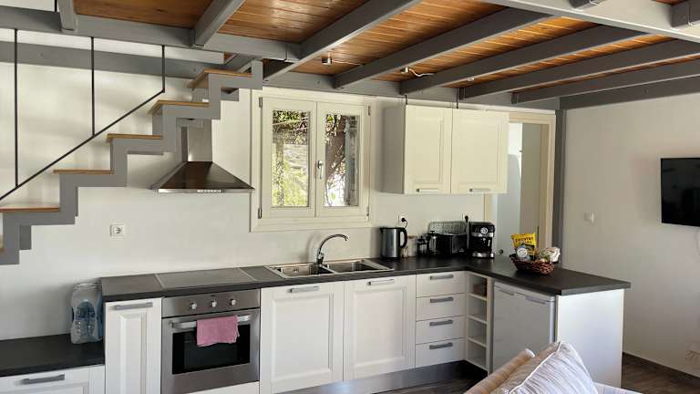 Das Ferienhaus befindet sich in Ano Syros, nur 1,7 km vom Strand Kini und 2,5 km vom Strand Lotos entfernt. Die St.-Nikolaus-Kirche ist 11 km entfernt und der Strand Delfini ist nur wenige Schritte entfernt. In der Nähe gibt es auch das Industriemuseum von Ermoupoli und die Werften von Neorion. Der Syros Island National Airport ist nur 10 km entfernt.