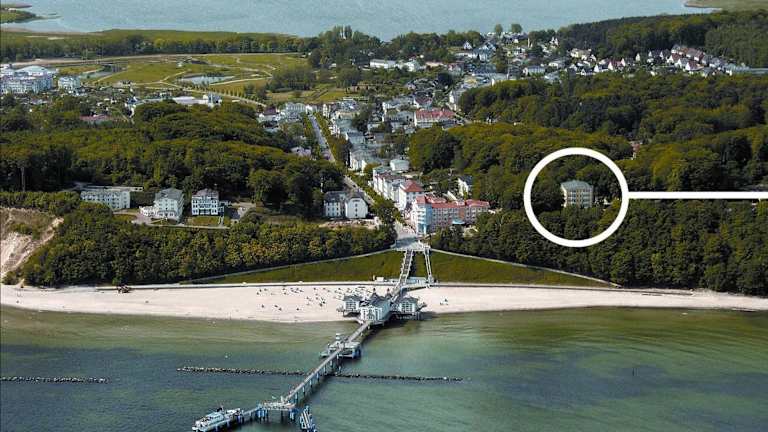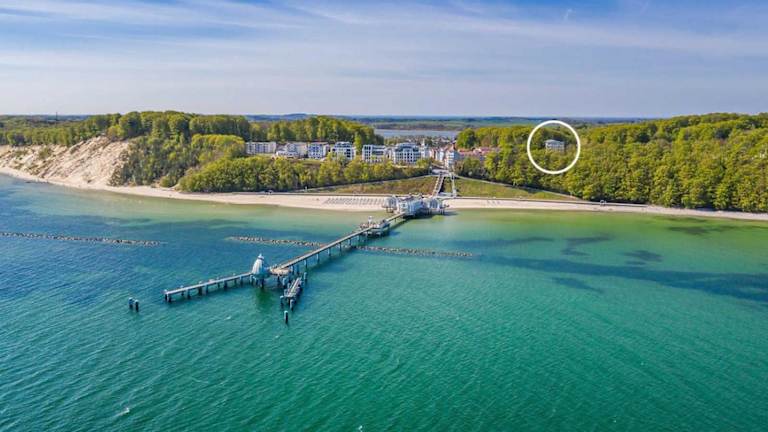 Die Unterkunft befindet sich im Ostseebad Sellin, in der Nähe des Hundestrands. Die Umgebung umfasst Sehenswürdigkeiten wie die Naturbühne Ralswiek und den Nationalpark-Zentrum Königsstuhl, die in relativ kurzer Entfernung liegen. Der nächstgelegene Flughafen ist der Flughafen Heringsdorf, der ca. 126 km entfernt ist.