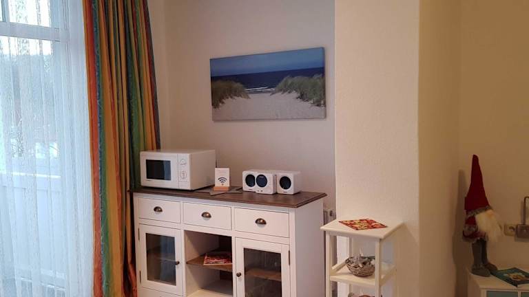 In der Ferienwohnung steht eine Küchenzeile zur Verfügung, ausgestattet mit Kühlschrank und Geschirrspüler. Die Unterkunft ermöglicht Selbstverpflegung.