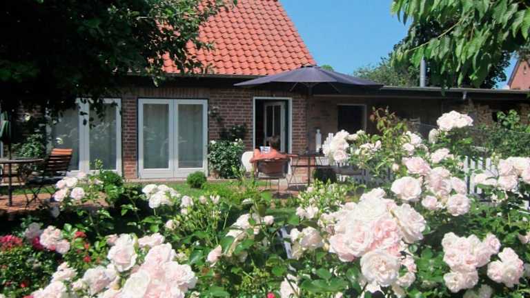 Die Ferienwohnung 'Rosenkate 1' bietet Übernachtungsmöglichkeiten in einer gut ausgestatteten Unterkunft mit Terrasse, Garten und Außenpool. Kostenloses WLAN steht in der gesamten Unterkunft zur Verfügung und ein Privatparkplatz ist ebenfalls vorhanden.