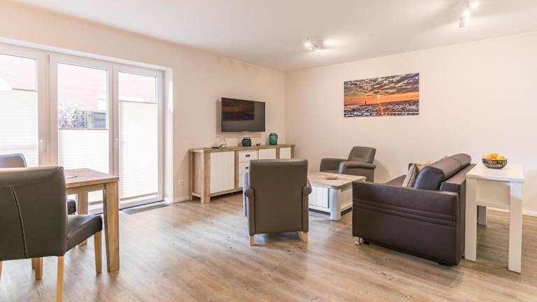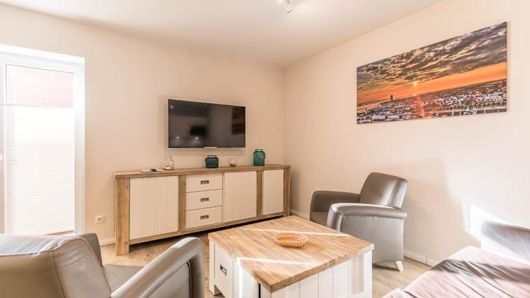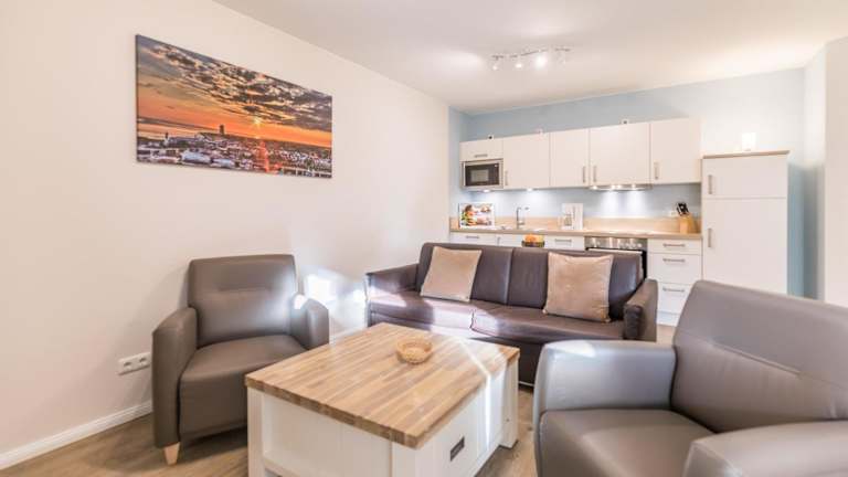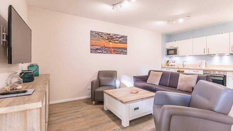 Die Ferienwohnung umfasst ein Schlafzimmer, ein Wohnzimmer sowie eine voll ausgestattete Küche mit Kühlschrank und Wasserkocher. Zudem ist ein Badezimmer mit Dusche und Haartrockner vorhanden. Kostenfreies WLAN und ein TV sind ebenfalls Teil der Ausstattung. Bettwäsche und Handtücher sind nicht im Preis inbegriffen, können jedoch gegen eine zusätzliche Gebühr von 23 EUR pro Person gemietet werden.
