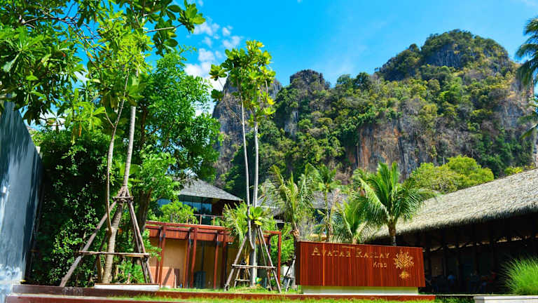 Das Avatar Railay Hotel in Railay Beach, Krabi, bietet Ihnen einen erholsamen Aufenthalt mit einem Außenpool und einer Sonnenterrasse. Genießen Sie köstliche Gerichte im hoteleigenen Restaurant und an der Bar. WLAN ist kostenlos verfügbar und jedes Zimmer ist mit einem Flachbild-Sat-TV ausgestattet. Einige Zimmer bieten zudem einen eigenen Sitzbereich zum Entspannen. Genießen Sie die Aussicht auf den Pool oder den Garten und nutzen Sie die Annehmlichkeiten wie Wäschemöglichkeiten und eine Gepäckaufbewahrung. Flughafentransfers können gegen Aufpreis arrangiert werden. Die Umgebung bietet verschiedene Attraktionen wie die Princess Lagoon und den Railay Rock Climbing Point. Der Flughafen Krabi ist nur etwa 18 km entfernt.