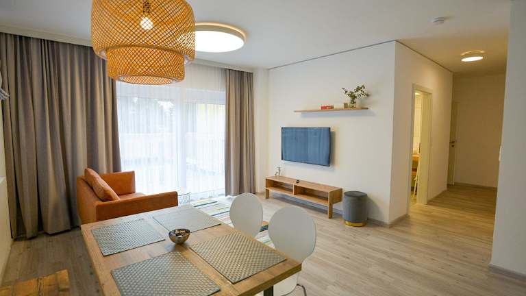 Die Wohneinheiten sind mit einem Balkon, einem Flachbild-TV, einer gut ausgestatteten Küchenzeile und einem eigenen Badezimmer ausgestattet.
