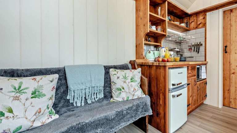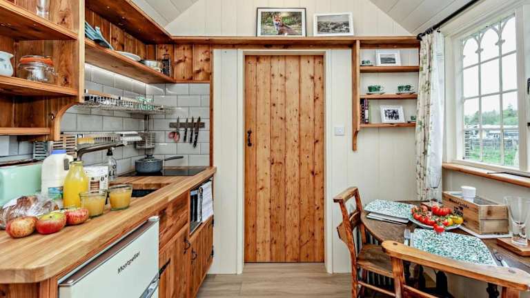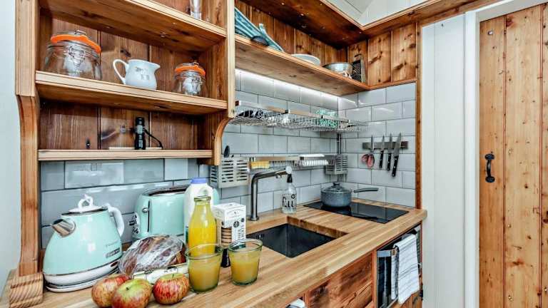Das Ferienhaus verfügt über ein Schlafzimmer, eine Küche mit einem Ofen sowie ein Badezimmer. Handtücher und Bettwäsche werden in der Unterkunft bereitgestellt.