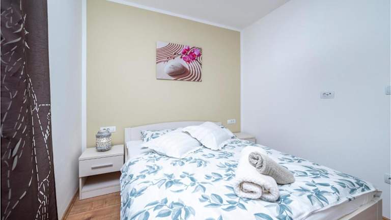 Die Ferienwohnung besteht aus einem Schlafzimmer und verfügt über eine gut ausgestattete Küche mit Kühlschrank und Geschirrspüler. Ein Wohnzimmer sowie ein Flachbild-TV sind ebenfalls vorhanden. Die Unterkunft ist klimatisiert und bietet Annehmlichkeiten wie Heizung und WLAN in allen Bereichen.
