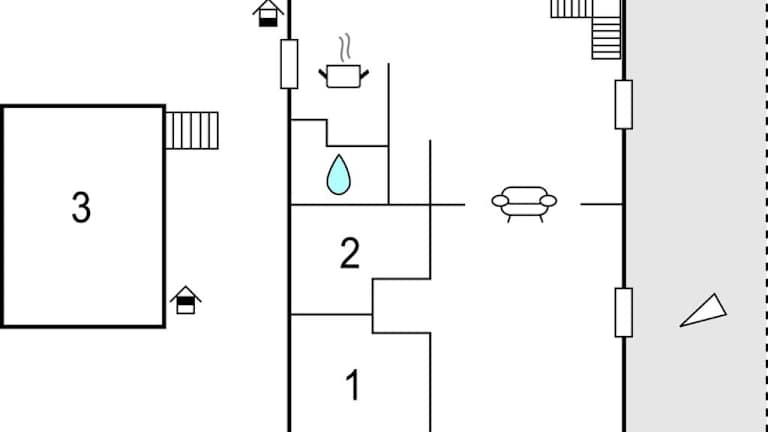 Die Zimmer umfassen drei separate Schlafzimmer und zwei Badezimmer. Die Küchenzeile ist mit einem Kühlschrank und einer Herdplatte ausgestattet.