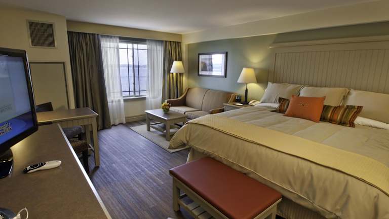 Die Zimmer im 1000 Islands Harbor Hotel sind stilvoll und komfortabel eingerichtet und bieten eine Reihe von Annehmlichkeiten für einen angenehmen Aufenthalt. Jedes Zimmer verfügt über einen Kabel-TV, einen Kühlschrank und ein eigenes Badezimmer mit natürlichen Pflegeprodukten, einem Haartrockner und Bademänteln. Die Zimmer sind geschmackvoll gestaltet und bieten eine entspannte und gemütliche Atmosphäre.