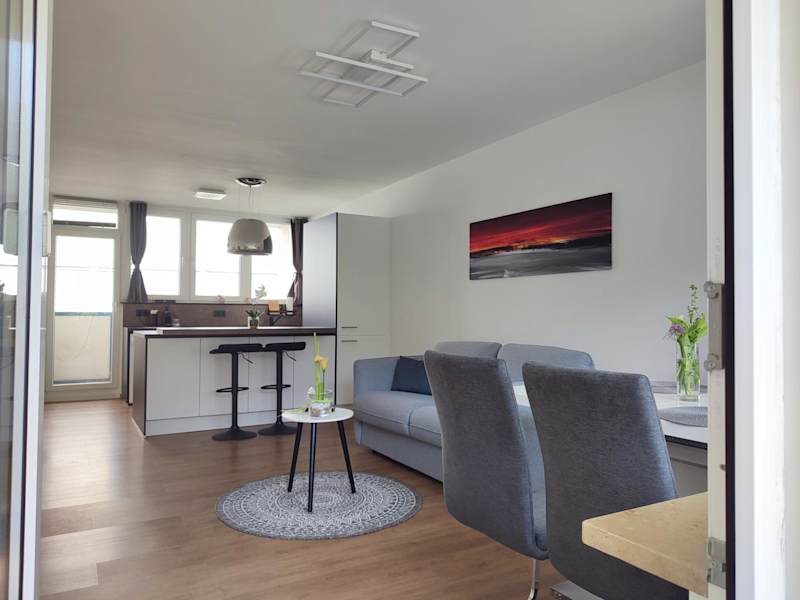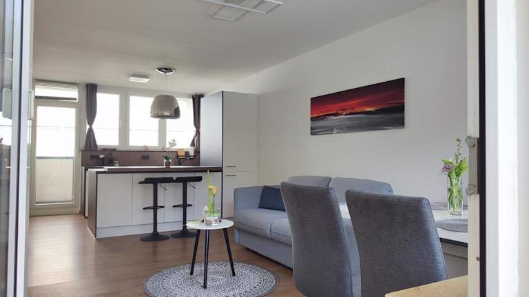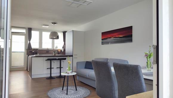 Die Ferienwohnung verfügt über ein Schlafzimmer, ein Wohnzimmer und ein Badezimmer mit Badewanne. Zur Ausstattung gehören ein Flachbild-TV, eine gut ausgestattete Küche mit Kühlschrank und Geschirrspüler sowie Handtücher und Bettwäsche. Es werden auch Zustellbetten und Babybetten angeboten.
