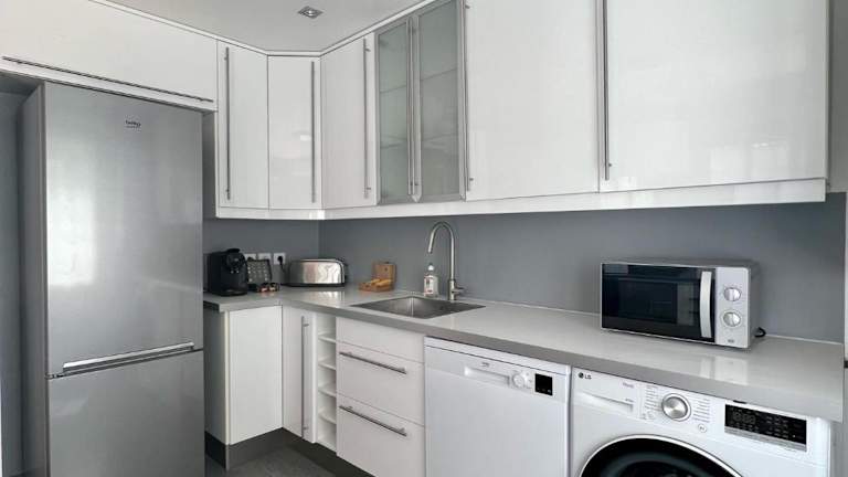 Die Ferienwohnung umfasst 3 Schlafzimmer, eine voll ausgestattete Küche mit Kühlschrank und Geschirrspüler, einen Flachbild-TV, einen Sitzbereich und 2 Badezimmer mit Dusche. Handtücher und Bettwäsche werden zur Verfügung gestellt.