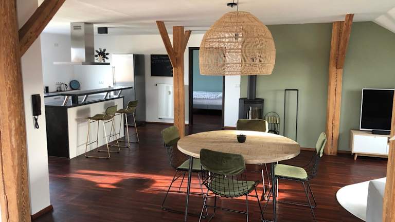 Im 110qm Countryside Loft können Sie Ihre eigenen Mahlzeiten zubereiten, da das Apartment über eine voll ausgestattete Küche verfügt. Alternativ können Sie auch die Grillmöglichkeiten im Garten nutzen und im Freien speisen. In der Umgebung finden Sie auch verschiedene Restaurants und Cafés, in denen Sie lokale Spezialitäten und internationale Küche genießen können.