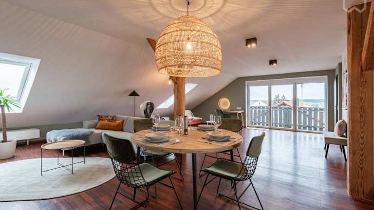 Das 110qm Countryside Loft befindet sich in Neufahrn in Niederbayern, etwa 41 km vom Regensburger Hauptbahnhof, dem Regensburger Dom und der Universität Regensburg entfernt. Die zentrale Lage bietet Ihnen die Möglichkeit, die historischen und kulturellen Sehenswürdigkeiten der Region zu erkunden. In der Nähe des Apartments finden Sie auch verschiedene Freizeitaktivitäten wie Wandern, Radfahren und Schwimmen im Außenpool. Der nächstgelegene Flughafen ist der Flughafen München, der etwa 64 km entfernt ist.