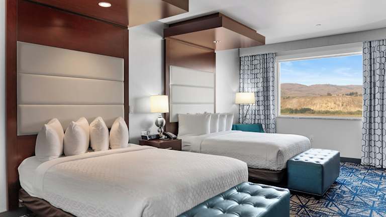 Die 80 Zimmer im 12 Tribes Omak Casino Hotel bieten Ihnen ein gemütliches Zuhause. Die Zimmer sind mit einem Kühlschrank und einem Flachbildfernseher ausgestattet. Das komfortable Pillowtop-Bett bietet hochwertige Bettwaren und eine Daunenbettdecke. Kostenloses WLAN und ein iPod-Dockingstation sind ebenfalls vorhanden. Die eigenen Badezimmer verfügen über Duschen, Designer-Toilettenartikel und Haartrockner.