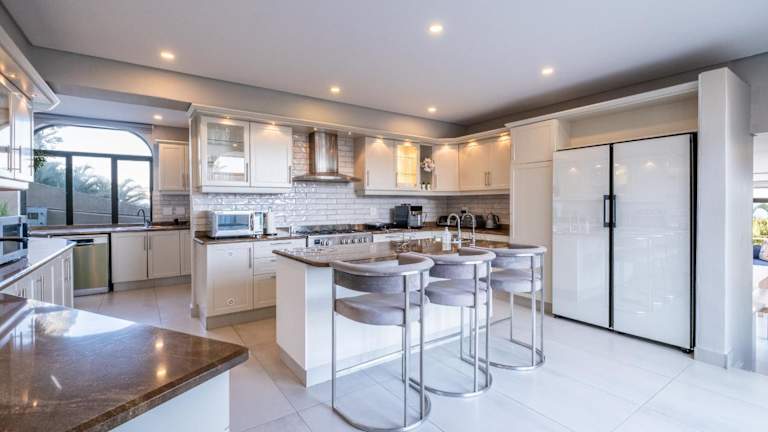 Das Ferienhaus umfasst fünf Schlafzimmer, ein Wohnzimmer und eine voll ausgestattete Küche mit Kühlschrank und Kaffeemaschine. Es existieren vier Badezimmer, die mit Dusche und kostenlosen Pflegeprodukten ausgestattet sind. Handtücher und Bettwäsche werden zur Verfügung gestellt.