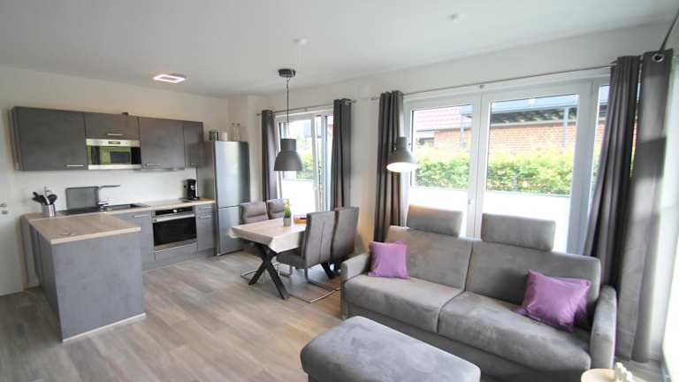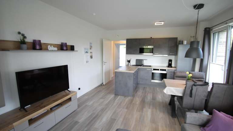 Die Ferienwohnung verfügt über 1 Schlafzimmer und eine gut ausgestattete Küche, die mit einem Kühlschrank und einem Geschirrspüler ausgestattet ist. Zudem gibt es ein Wohnzimmer und einen TV.