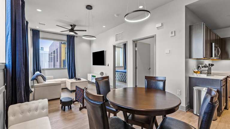 Die Unterkünfte im 175 LEX bieten einen herrlichen Blick auf die Stadt und sind mit modernen Annehmlichkeiten ausgestattet, um den Gästen einen angenehmen Aufenthalt zu ermöglichen. Jede Unterkunft verfügt über eine voll ausgestattete Küche mit einem Essbereich, in dem Sie Ihre eigenen Mahlzeiten zubereiten können. Der Flachbild-TV sorgt für Unterhaltung und das private Badezimmer ist mit einer Dusche, kostenfreien Pflegeprodukten und einem Haartrockner ausgestattet. Zusätzliche Annehmlichkeiten wie ein Kühlschrank, ein Geschirrspüler, ein Backofen und eine Kaffeemaschine stehen ebenfalls zur Verfügung.