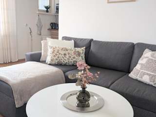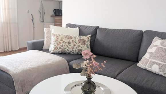 Die Ferienwohnung besteht aus einem Schlafzimmer, einem Wohnzimmer, einer voll ausgestatteten Küche mit Kühlschrank und Kaffeemaschine sowie einem Badezimmer mit Bidet und Dusche. Handtücher und Bettwäsche werden bereitgestellt. Ein Kinderspielplatz ist ebenfalls vorhanden.