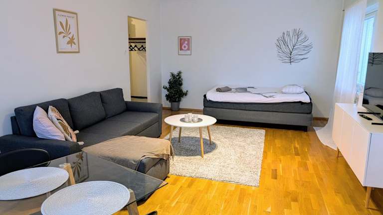 Die Unterkunft 18 - Cozy apartment with view, top 7th floor bietet eine Ferienwohnung im 7. Stock mit Blick auf die Stadt sowie einem Garten. Kostenloses WLAN ist in der gesamten Unterkunft verfügbar.