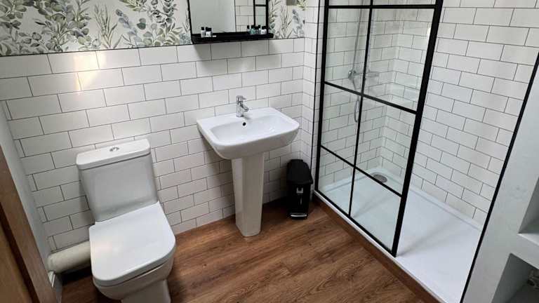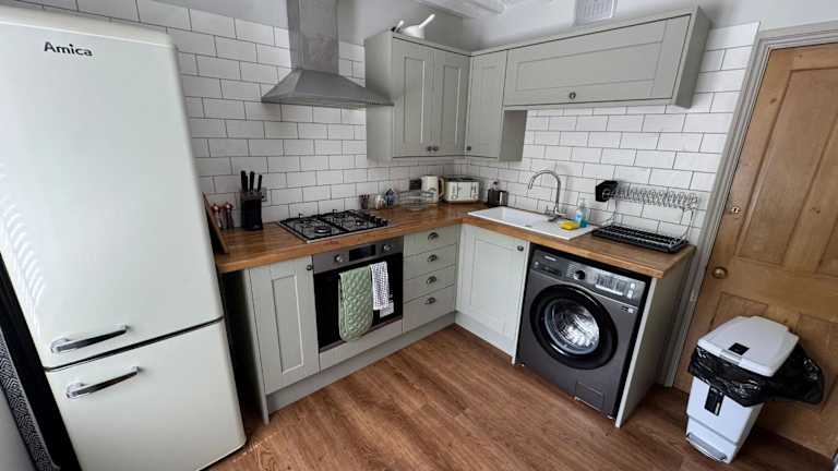Die Unterkunft umfasst 2 Schlafzimmer und 1 Badezimmer mit einer Dusche. Des Weiteren bietet sie einen Sitzbereich sowie eine Küche, die mit einem Kühlschrank ausgestattet ist.