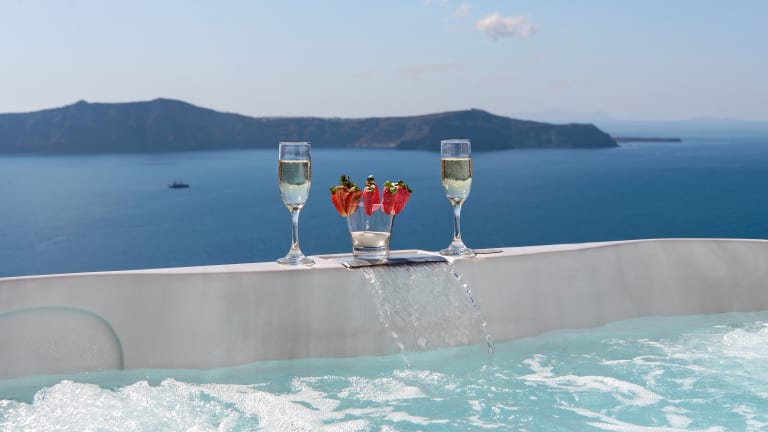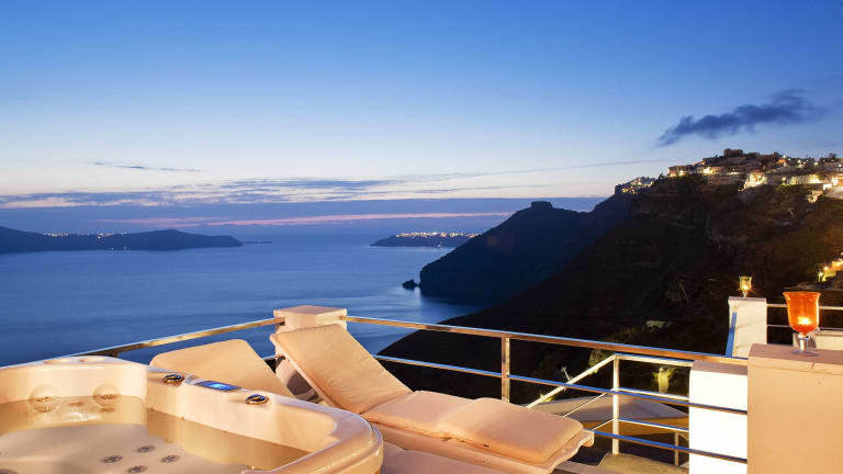 Die Villa befindet sich in Fira, Santorini, in der Nähe des Megaro Gyzi und bietet einen Blick auf den Vulkan sowie die Ägäis. Santorini (Thira) Flughafen ist 4 km entfernt.