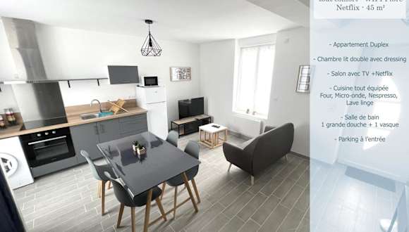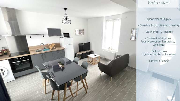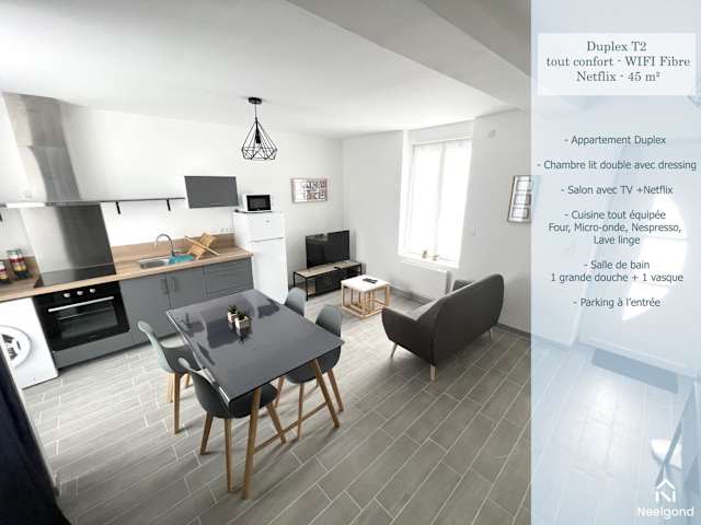 Das 180A - Duplex T2 Tout Confort du Gond - 45 m2 ist eine geräumige Ferienwohnung, die komfortable Übernachtungsmöglichkeiten bietet. Sie ist für Zwecke wie längere Aufenthalte oder einen kurzen Urlaub geeignet. Es handelt sich um eine Nichtraucherunterkunft mit verschiedenen Annehmlichkeiten und einem privaten Gastgeber.