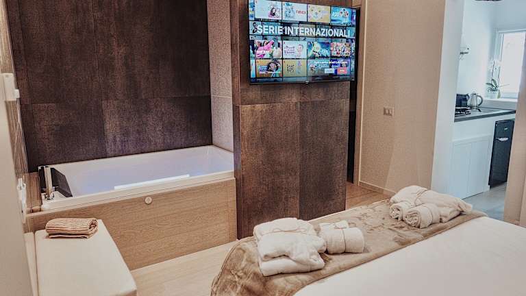 Die Zimmer sind mit einem Satelliten Flachbild-TV, einem Safe, einer ausgestatteten Küche mit Kühlschrank sowie einem eigenen Badezimmer mit Bidet ausgestattet. Jede Unterkunft bietet ein voll ausgestattetes Badezimmer mit Dusche und kostenlosen Pflegeprodukten.
