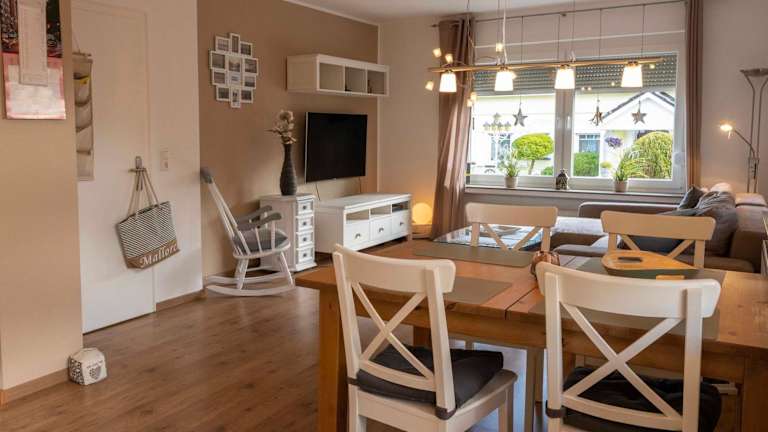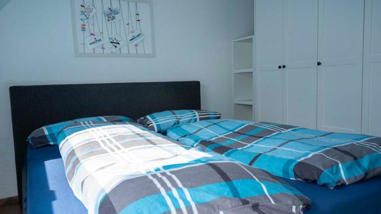 Die Ferienwohnung umfasst drei Schlafzimmer, eine Küchenzeile mit Kühlschrank und Geschirrspüler sowie ein Badezimmer, das mit einer Dusche und einer Badewanne ausgestattet ist. Handtücher und Bettwäsche werden bereitgestellt.