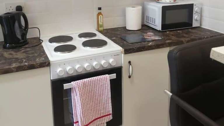 Die Unterkunft verfügt über eine Küche, die mit einem Kühlschrank und einem Ofen ausgestattet ist, allerdings sind keine spezifischen Verpflegungsmöglichkeiten angegeben.