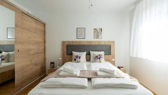 Die Ferienwohnung besteht aus einem separaten Schlafzimmer, einem Badezimmer und einem Wohnzimmer.