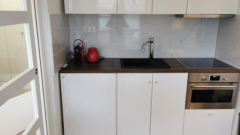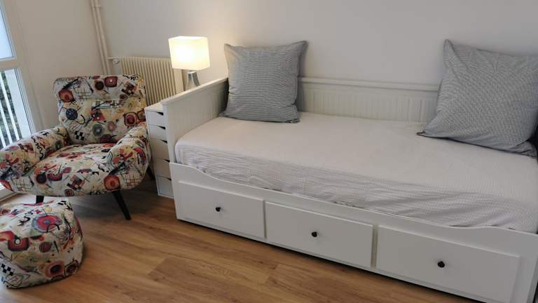 Die Ferienwohnung verfügt über 1 Schlafzimmer, ein Wohnzimmer und eine voll ausgestattete Küche, die mit einem Kühlschrank und einer Kaffeemaschine ausgestattet ist. Des Weiteren gibt es 1 Badezimmer mit einer Dusche und einem Haartrockner. Handtücher und Bettwäsche werden bereitgestellt.