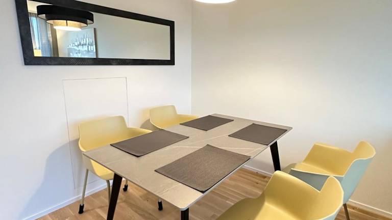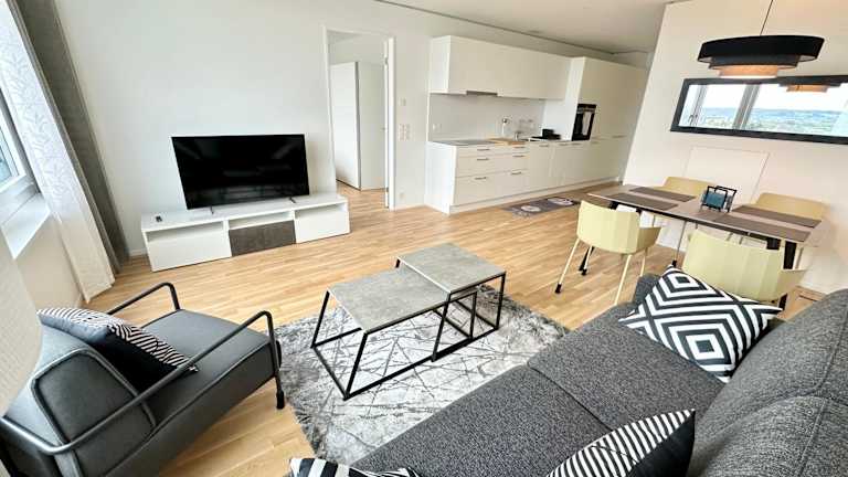 Die 2.5 Room@MydiHei Apartments bieten eine Ferienwohnung mit Stadtblick, die keine Feiern wie Junggesellenabschiede erlaubt. Check-in ist von 16:00 bis 18:00 Uhr möglich, der Check-out findet zwischen 09:00 und 12:00 Uhr statt. Die Unterkunft verfügt über kostenloses WLAN und einen Privatparkplatz. Die professionelle Reinigung der Räumlichkeiten wird von spezialisierten Reinigungsfirmen durchgeführt.