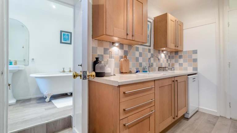 Das Ferienhaus besteht aus zwei Schlafzimmern und ist mit einer voll ausgestatteten Küche ausgestattet, die einen Kühlschrank und einen Geschirrspüler umfasst. Es stehen zwei Badezimmer zur Verfügung, die jeweils mit einer Dusche und einer Badewanne ausgestattet sind. Handtücher und Bettwäsche werden bereitgestellt.